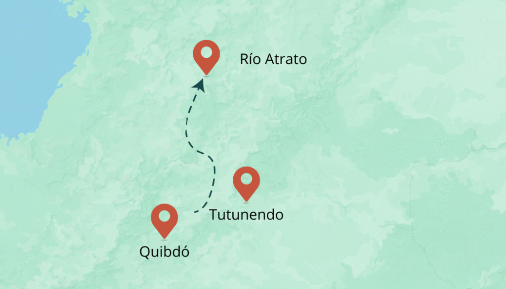 ✔︎ Iniciarás el día con un traslado a Tutunendo, corregimiento rodeado de selva húmeda y paisajes de agua.