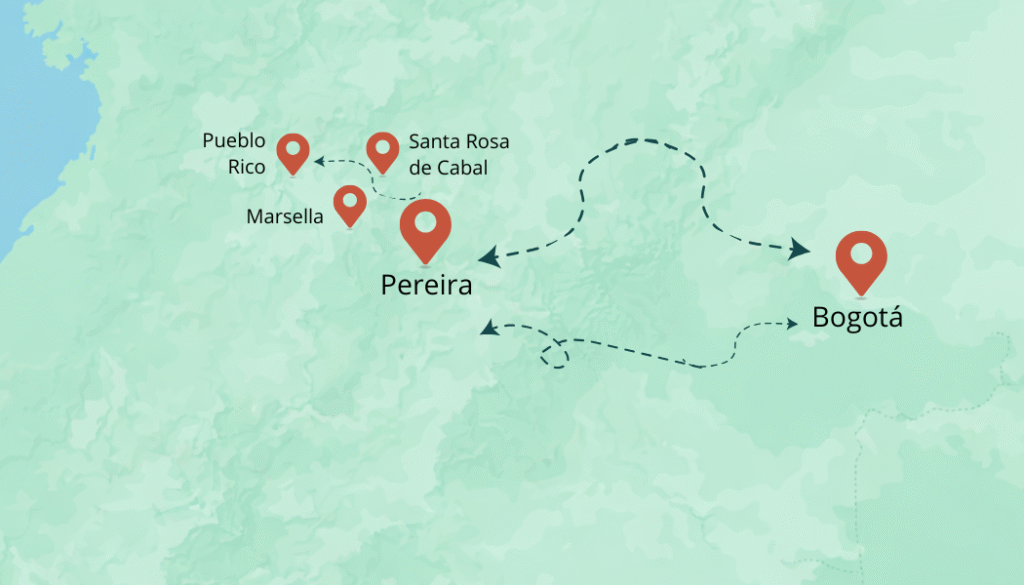 ✔︎ Volarás desde Bogotá al Aeropuerto Matecaña (Pereira); un conductor privado te recibirá y te llevará al alojamiento de lujo para tu check‑in asistido.