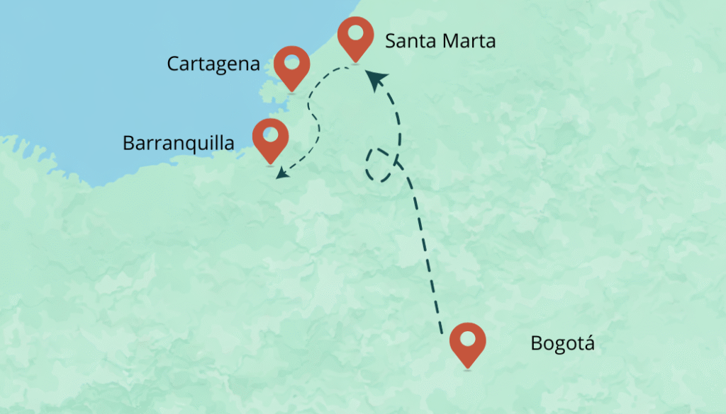 Te abrirás camino por el corazón cultural, histórico y natural del Caribe colombiano. Valledupar, tierra de música vallenata y tradiciones indígenas; Mompox, joya colonial a orillas del Magdalena; Coveñas, playas tranquilas para descansar; y Córdoba, donde conectarás con ganadería, gastronomía y naturaleza. Un viaje que combina historia, cultura, naturaleza y descanso frente al mar.